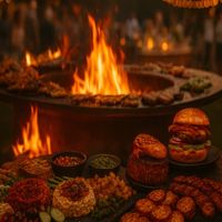 Premium Steaks von der Feuerplatte, Beefer, Live Grill RODIZIO, WOK Gerichte, Steinofenpizza, Gourmet Burger, Seafood, Fingerfood, Brasilianisches Churrasco Rodizio 35-200 Personen mit hervorragenden Fleisch, Seafood und Vegetarischem vom Drehspieß. Walk around Bauchladen Service. Full Service nach Absprache.